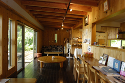 ブルーベリーガーデン旭 のサービス開園期間/7月上旬~9月上旬 ブルーベリースムージーや石窯ピザが味わえる併設のカフェは、期間中の木~日営業